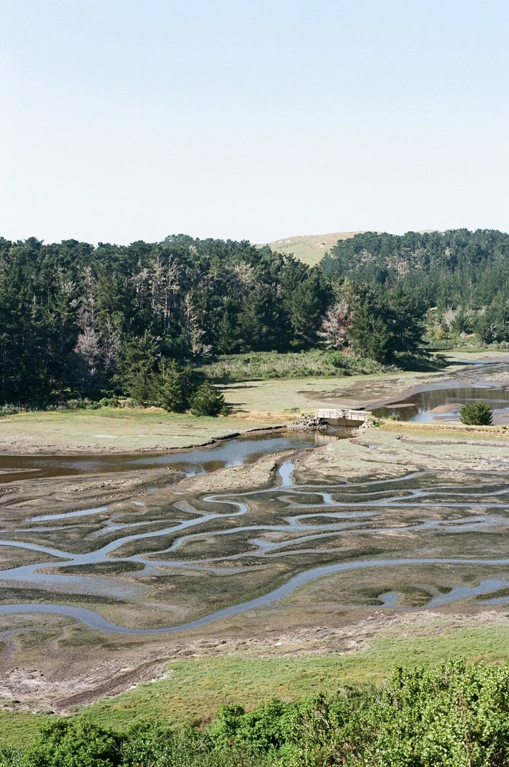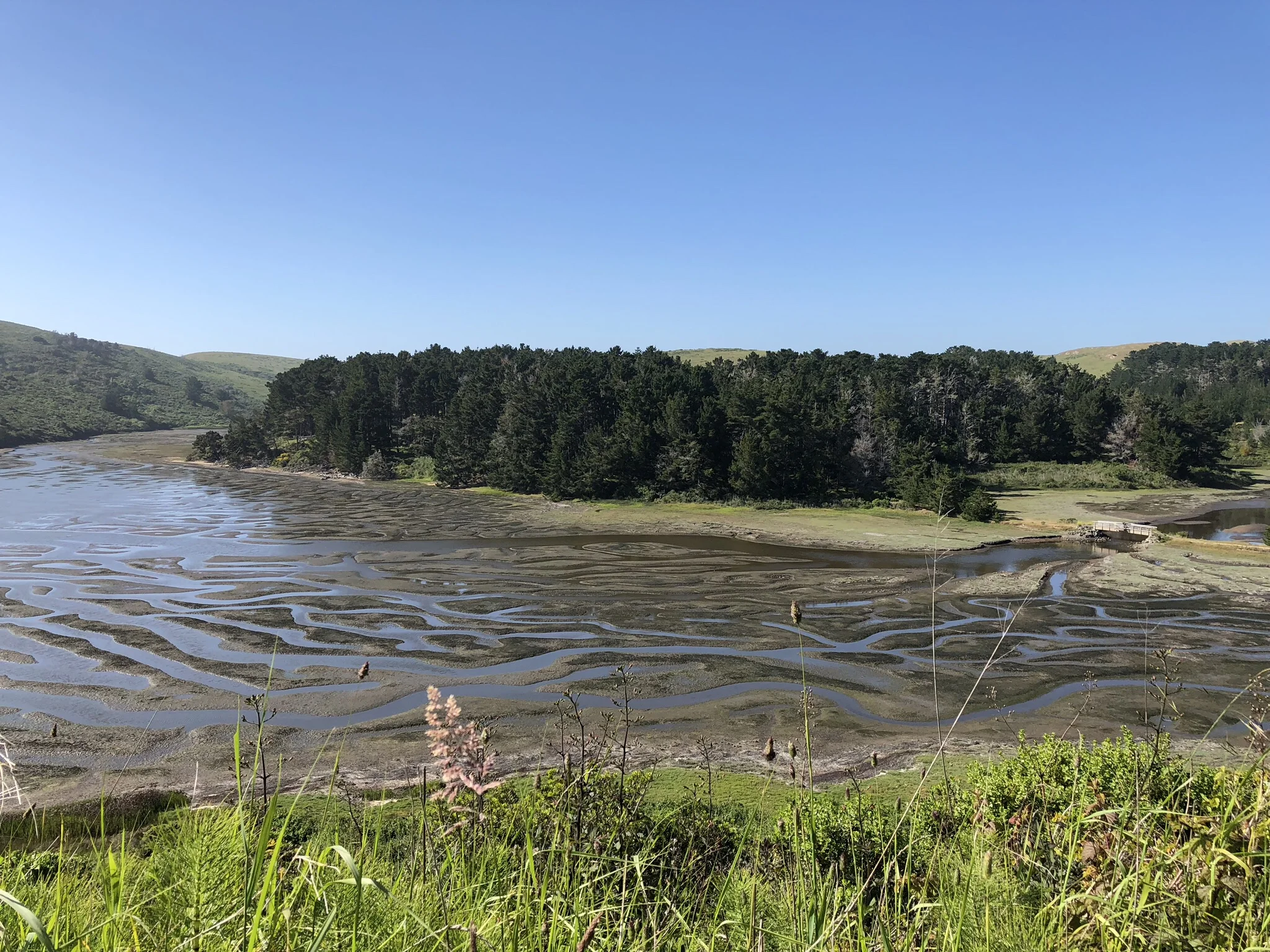 The hike itself involves a few moderate climbs; three in total, one-way. After parking at the Estero parking area, you’ll hit the Estero Trail and meander through grasslands before heading into a thick Eucalyptus grove. Then, the scenery opens up and you’ll be treated to an expansive view of Home Bay, a tidal estuary. Cross over the footbridge (there is a bench if you’re in the mood to soak up more of the views) and you’ll find shallow baywater and perhaps some wildlife sightings. I’ve come across deer, otters, and egrets. From there, you’ll climb over three hilltops, passing by ponds, a lone eucalyptus tree, beautiful coastal views…and have I talked about the estuaries?